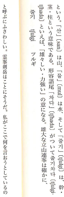 日本語の「ツルギ(剣)」は、もともと朝鮮語からきていて、だとするなら、立山が太刀山と転じ、太刀から剣の意味をもった剣岳になるのもうなずけます。これはもう論理的帰結ですね。